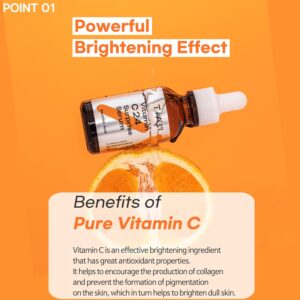 - Brightens and Evens Skin Tone: Ascorbic Acid, combined with the additional actives, works wonders in reducing the appearance of dark spots, hyperpigmentation, and uneven skin tone. The powerful combination helps fade age spots, sun damage, and discoloration, revealing a more even, luminous complexion.