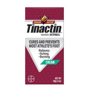 Tinea pedis, commonly known as athlete’s foot, is caused when various types of fungus invade the skin. It occurs between the toes and on the bottom and sides of the feet, is highly contagious, and can cause cracking, itching, burning, and foot odor. Tinactin antifungal cream provides relief from the symptoms of athlete’s foot and cures and prevents most athlete’s foot infections when used as directed.