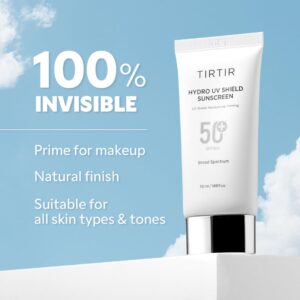 TIRTIR Hydro UV Shield Sunscreen | SPF 50+ UVA/UVB Protection, Lightweight, No White Cast, Non-greasy, Korean Sunscreen, 1.69 Fl Oz