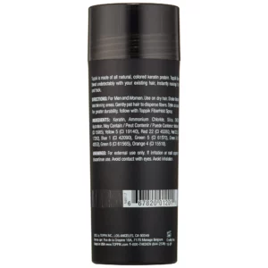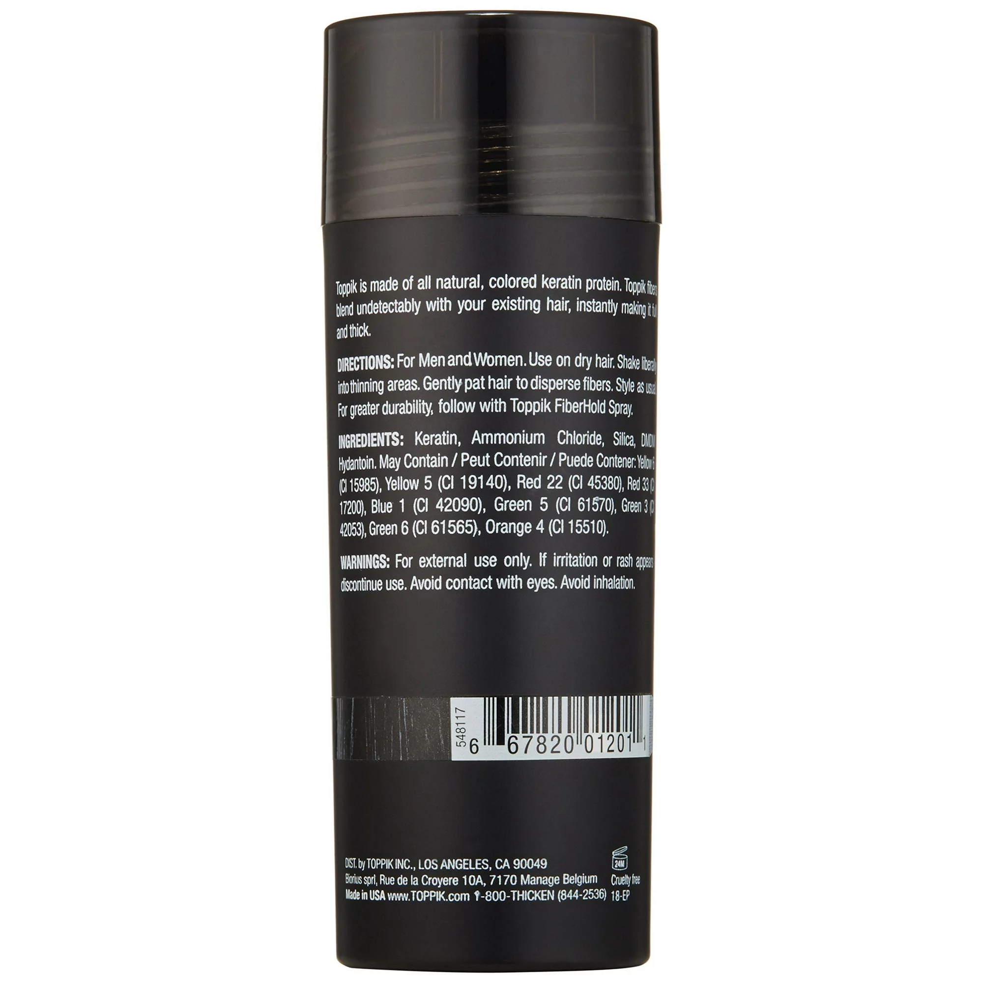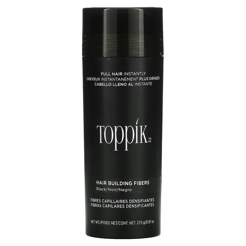 Toppik Hair Building Fibers, made of colored keratin protein, blend undetectably with existing hair strands to instantly create the appearance of naturally thick, full hair.