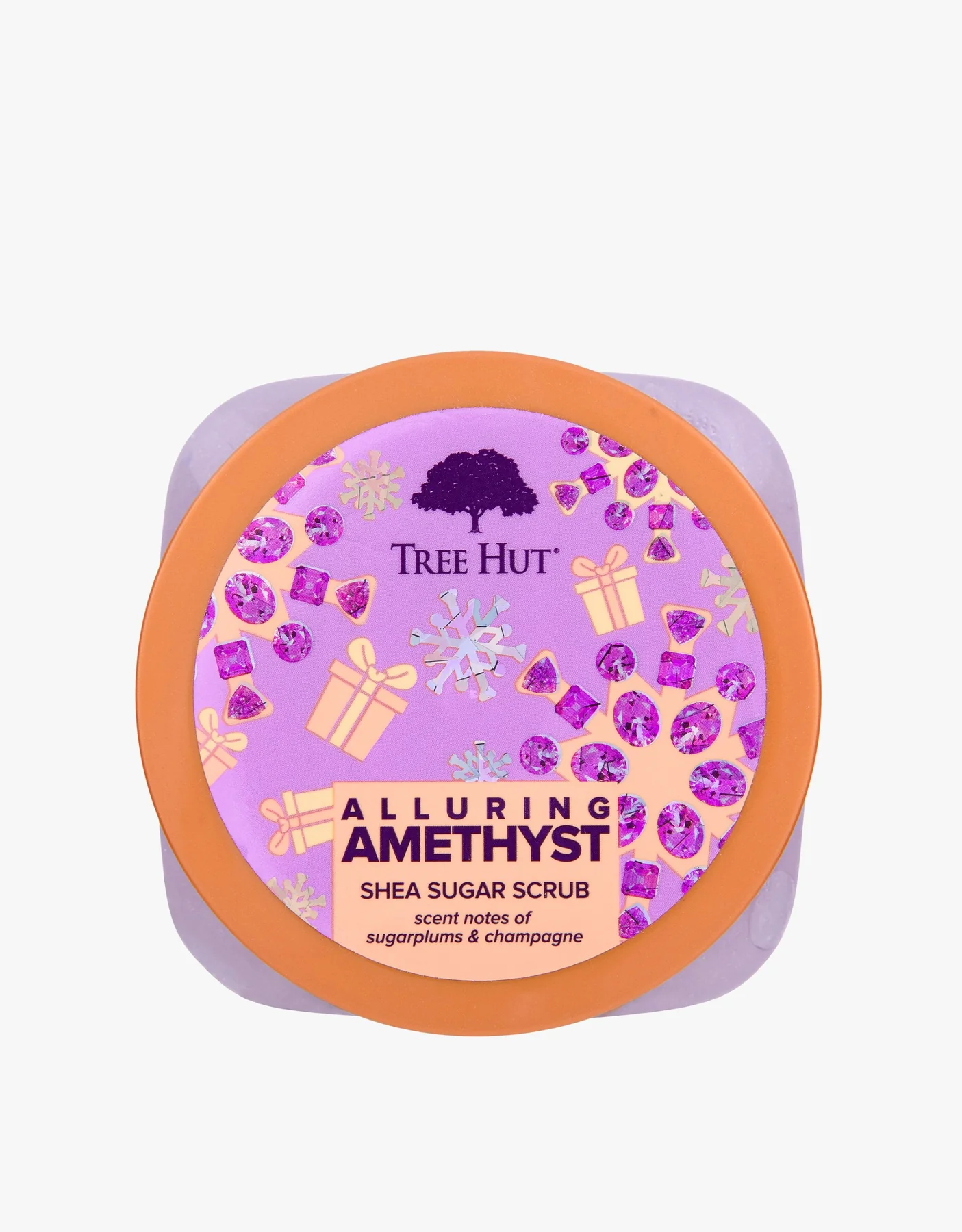 - Tree Hut Alluring Amethyst Shea Sugar Scrub gently exfoliates to remove dull, dead skin to reveal soft, smooth skin