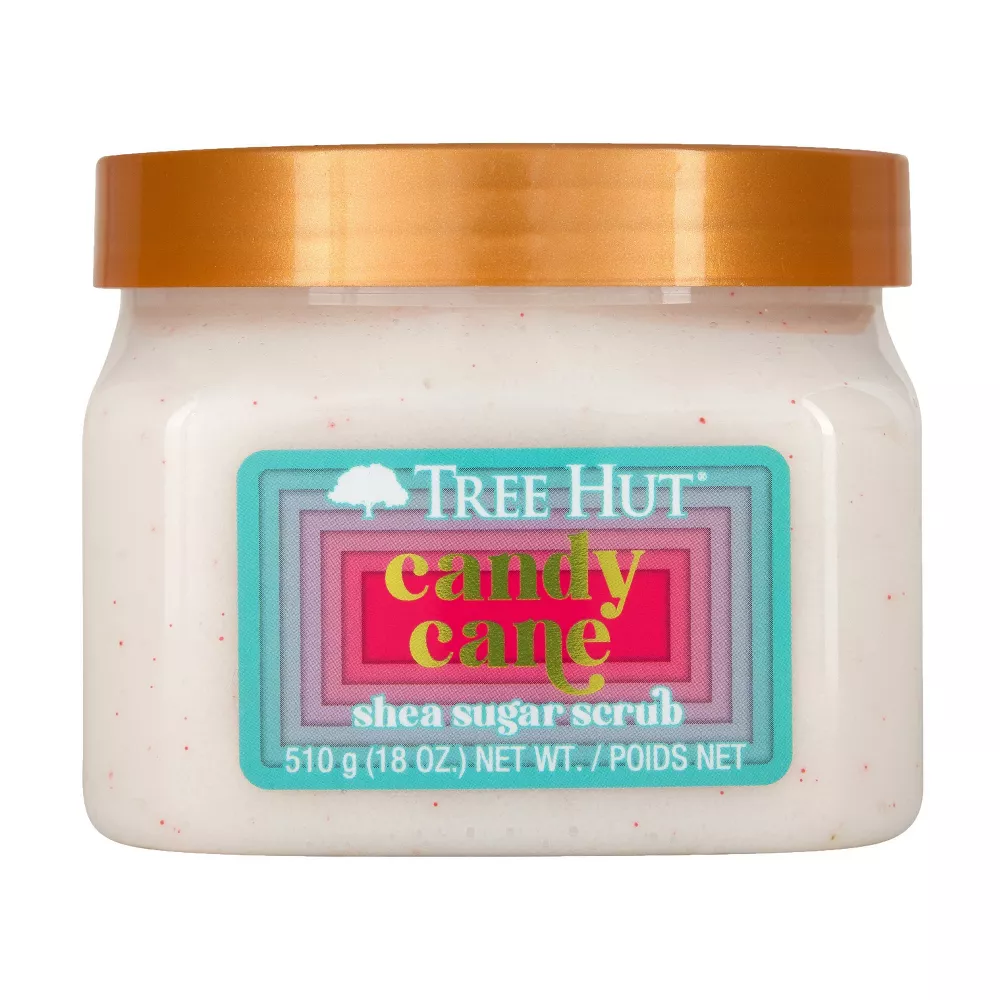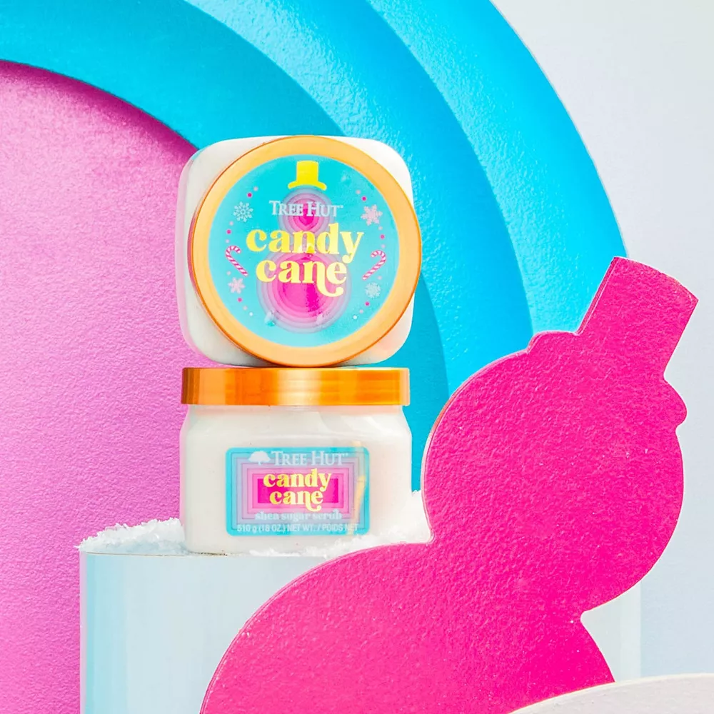 Reveal soft, glowing skin with the classic holiday scent of Tree Hut Candy Cane Sugar Scrub! Made with Sugar, Shea Butter, Peppermint, Vanilla and our premium blend of six natural oils, this body exfoliator scrub deeply nourishes and balances skin hydration to help restore your skin’s natural glow, while promoting firmer-looking skin and boosting skin elasticity. The thoughtful ingredients work together to hydrate, renew, and smooth skin while removing dull, dry skin. Plus, our Candy Cane Sugar Scrub features a pop of peppermint layered with creamy caramel and sweet vanilla inspired by classic holiday desserts and delights. Tree Hut Sugar Body Scrubs are paraben-free, vegan, sulfate-free, alcohol-free, and formaldehyde-free.