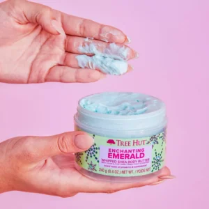 Tree Hut’s Enchanting Emerald Whipped Body Butter is the perfect skin treat after bath or as a skin-refresher. The fizzy scent of Enchanting Emerald will leave your skin feeling soft, hydrated, and smelling amazing!