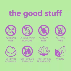 Vegan, paraben-free, sulfate-free, alcohol-free, and formaldehyde-free