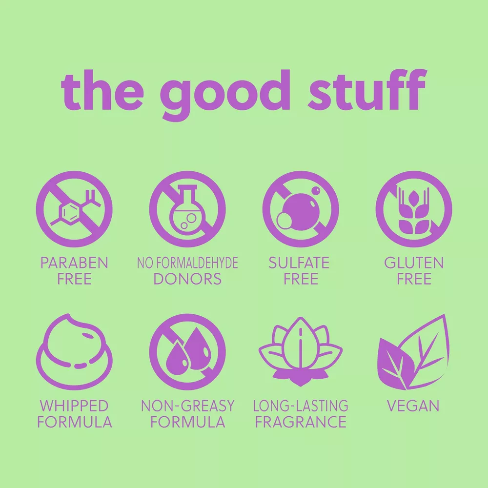 • Whipped body butter provides long-lasting hydration to leave skin feeling soft and smooth