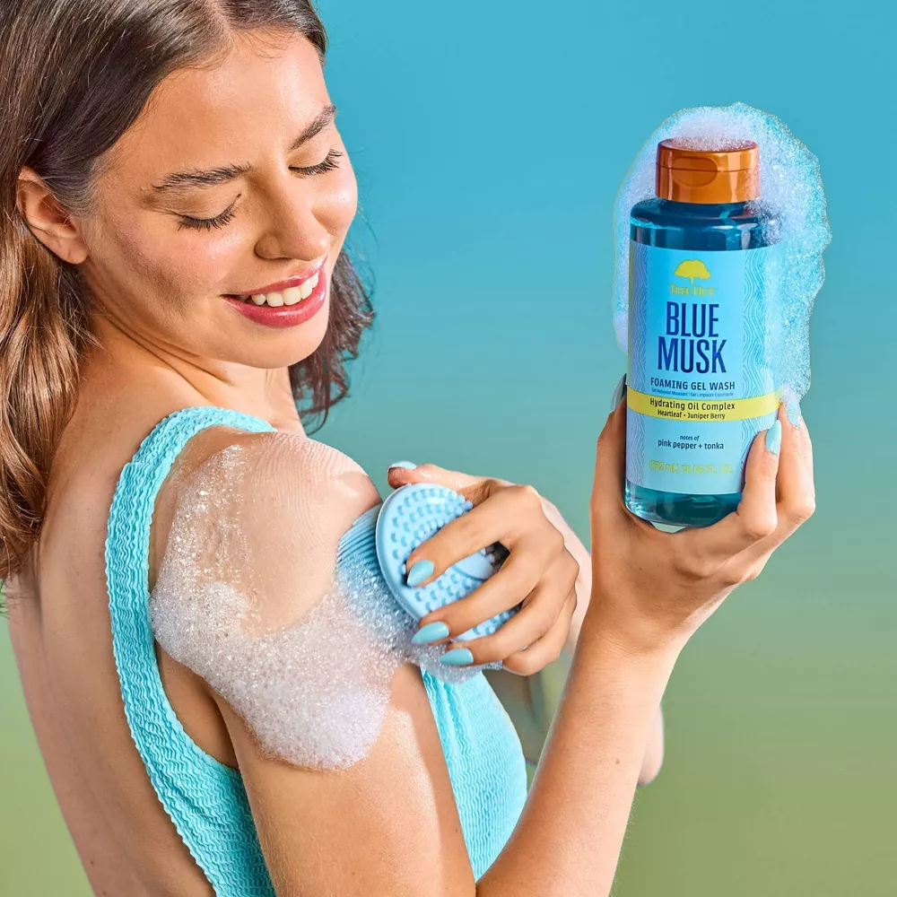 Start your shower with Tree Hut Blue Musk Foaming Gel Body Wash, a sophisticated escape for soft, smooth, and beautifully scented skin. Infused with our hydrating oil complex and antioxidant-rich avocado, kiwi, and orange oils, this luxurious foaming cleanser creates a rich, bubbly lather that nourishes and hydrates your skin.