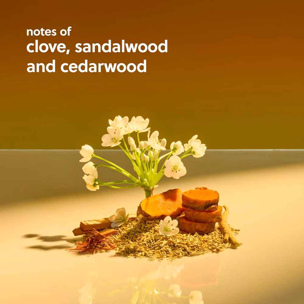 Features a grounding, woodsy scent that emits a warm aroma with notes of clove, sandalwood, and cedarwood