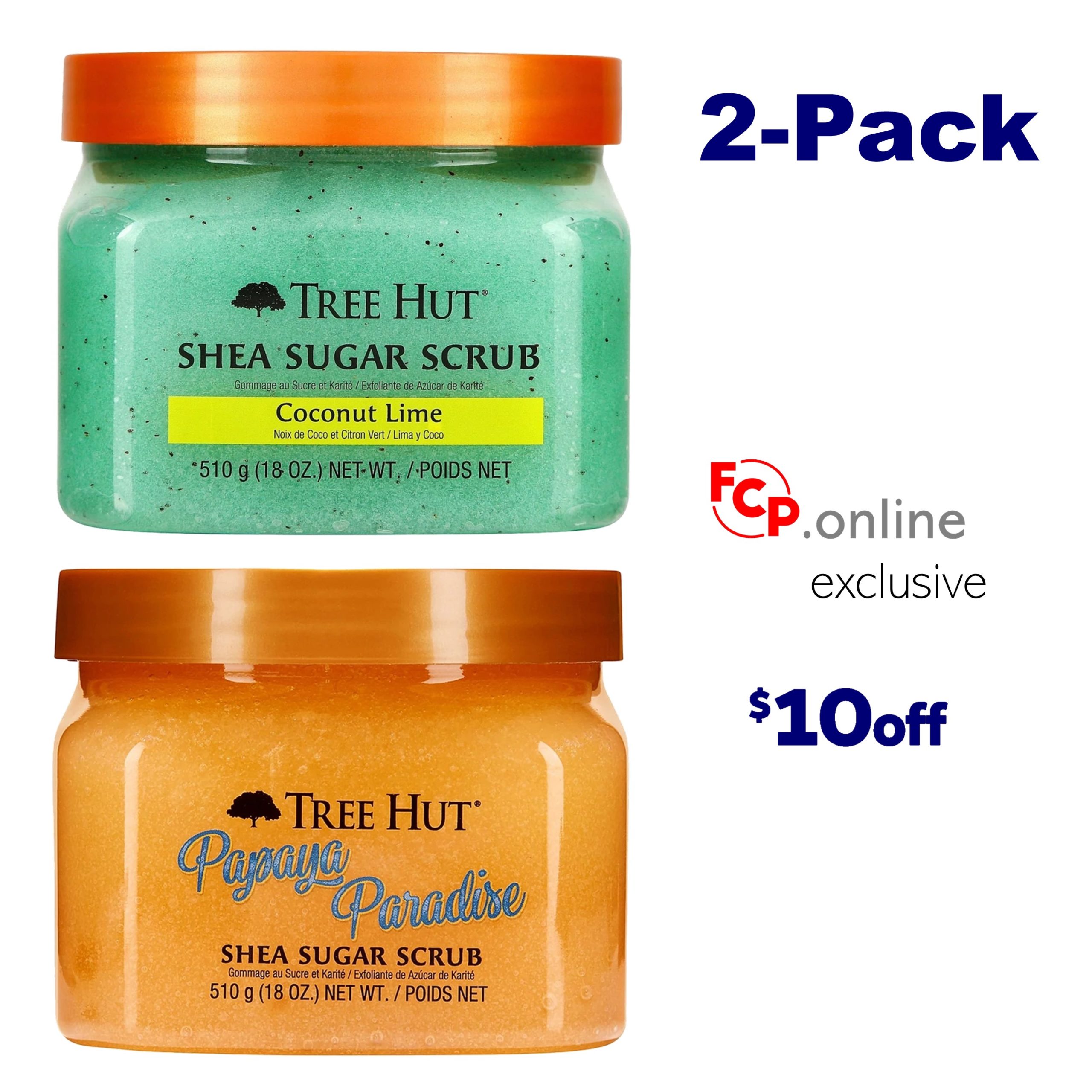 Tree Hut Papaya Paradise Shea Sugar Scrub 18oz + Tree Hut Coconut Lime Shea Sugar Scrub 18oz – ONLINE EXCLUSIVE