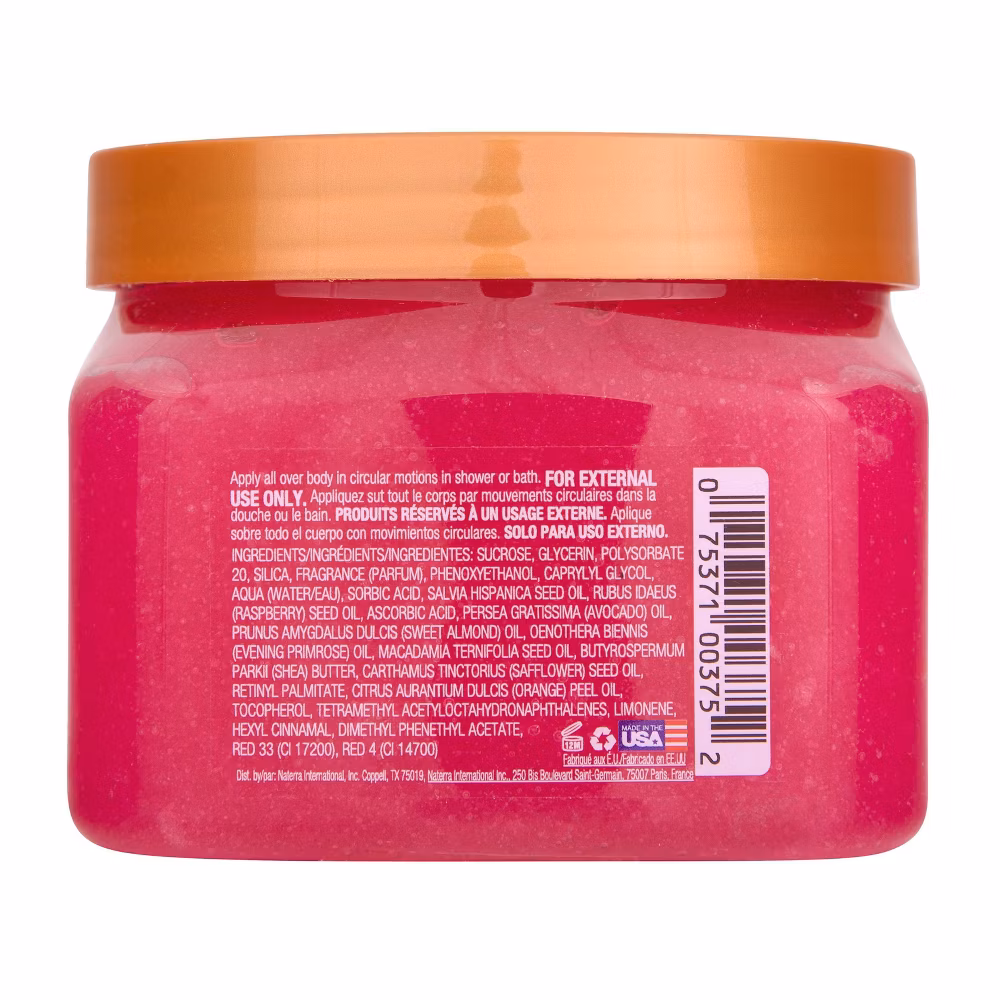 - Formulated with Sugar, Shea Butter, Raspberry Seed Oil, Chia Seed Oil, and a blend of six natural oils