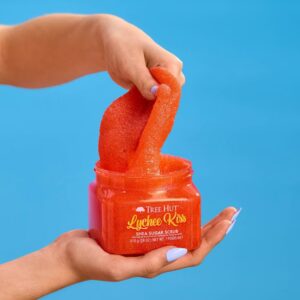The thoughtful ingredients work together to hydrate, renew, and smooth skin while removing dull, dry skin. Plus, our exotic, lush Lychee Kiss scent is inspired by fresh fruit in the sunny tropics, with mouth-watering notes of lychee, mango, and palm sugar. Tree Hut Shea Sugar Body Scrubs are formaldehyde-free, gluten-free, paraben-free, sulfate-free, and vegan.