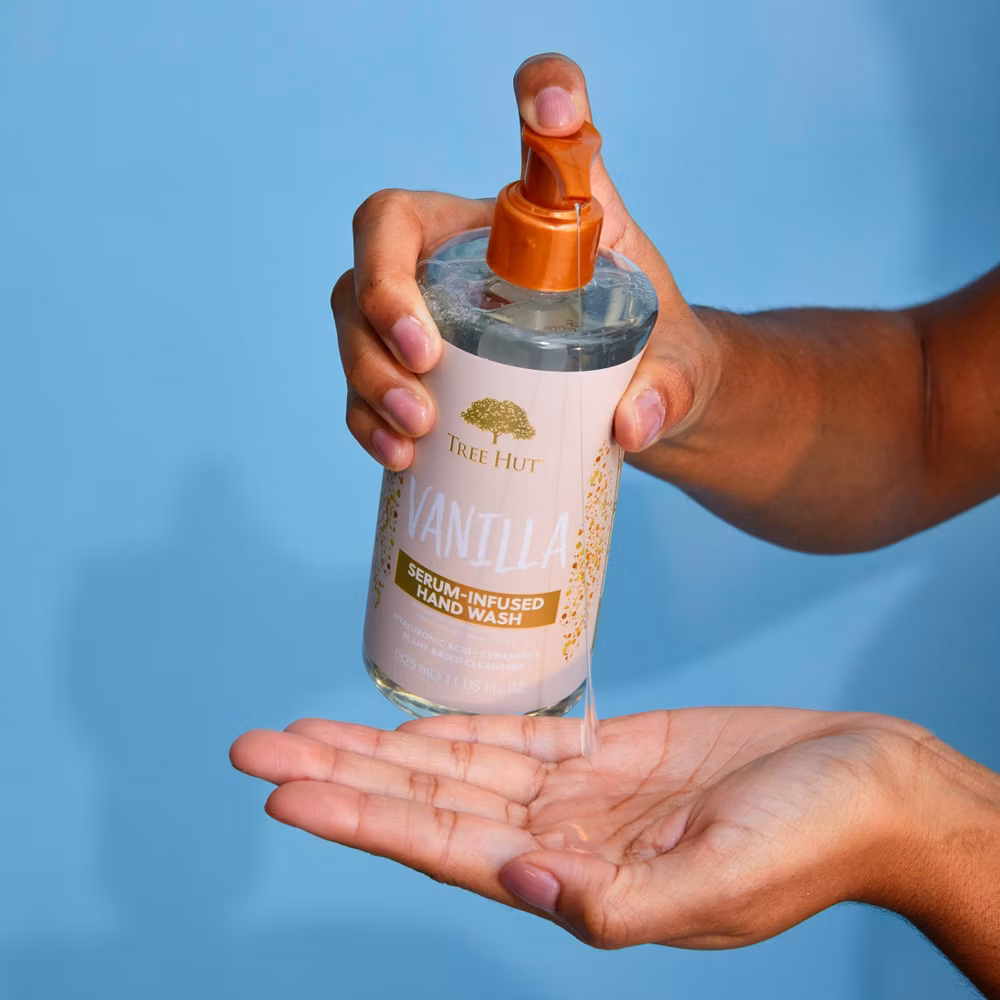 Tree Hut Serum-Infused Hand Washes are paraben-free, vegan, and sulfate-free, contain no formaldehyde donors, and have a nourishing hydrating formula.
