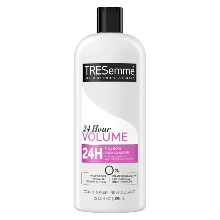 Get an all day volumizing boost for any hairstyle! TRESemmé 24 Hour Volumizing Conditioner for fine hair will help give hair volume and bounce, without weighing hair down. This hair volume conditioner, infused with vitamins and silk proteins, works to add volume to hair and provide the perfect level of conditioning for manageable, easier-to-style strands.