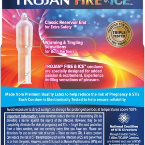 Trojan Fire & Ice Dual Action Condoms give you and your partner thrilling sensations to heighten pleasure during sex. The dual action premium lubricant inside and out delivers warming and tingling sensations for a more passionate experience – for both partners