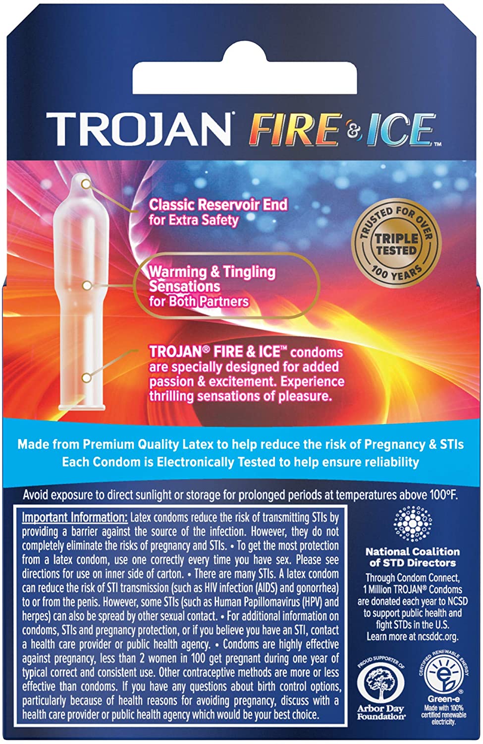- One 3 count box of Trojan Fire & Ice Dual Action Condoms
