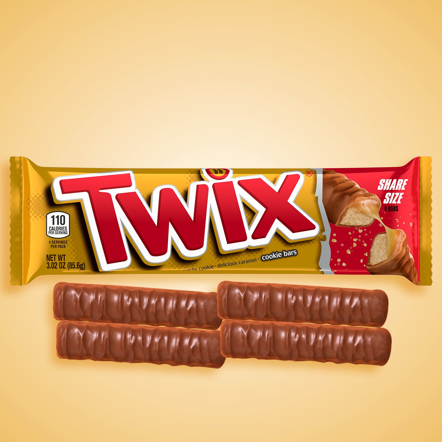 - Enjoy four TWIX Bars in one share size pack for an on-the-go treat