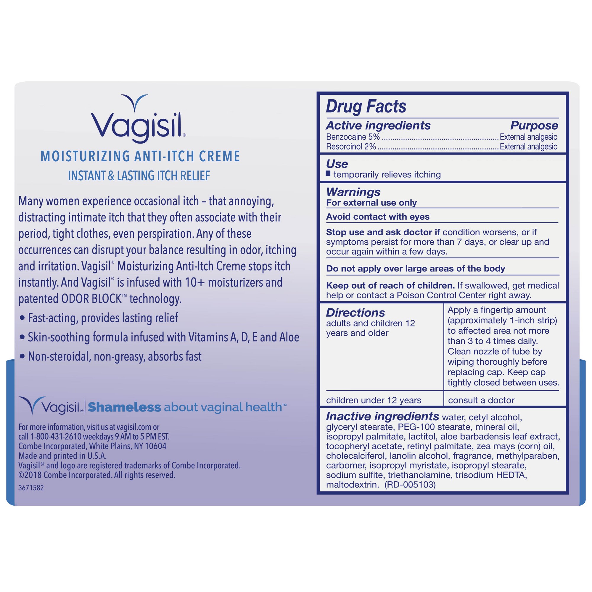- Vagisil Cream – relieves even the most painful, burning itch fast in vaginal area