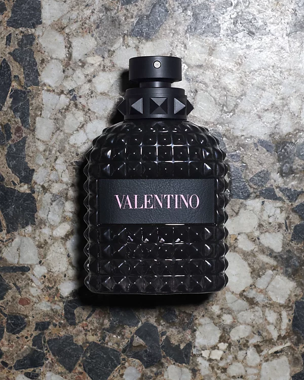 The bottle is designed with the iconic Valentino stud, inspired by Roma architecture, which is the signature of Valentino couture.