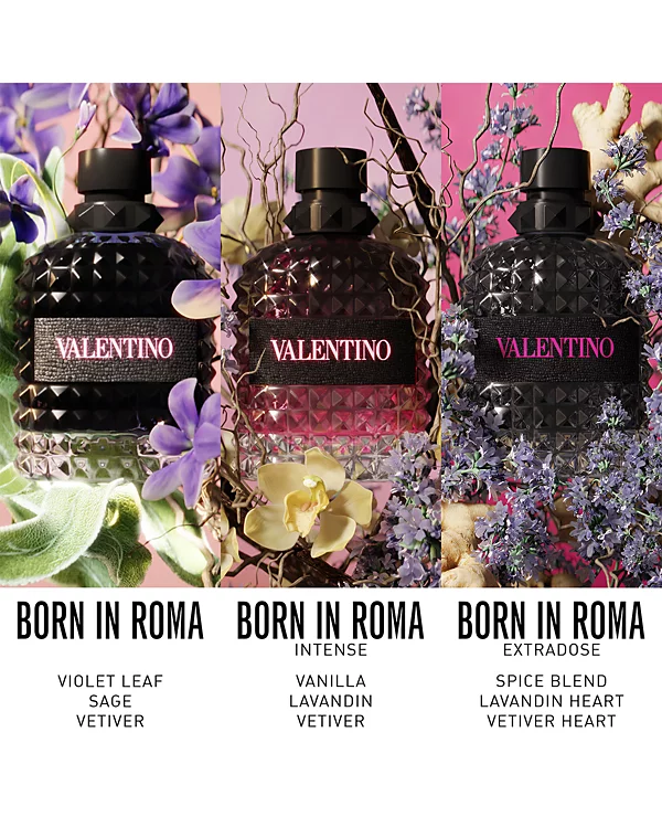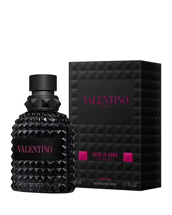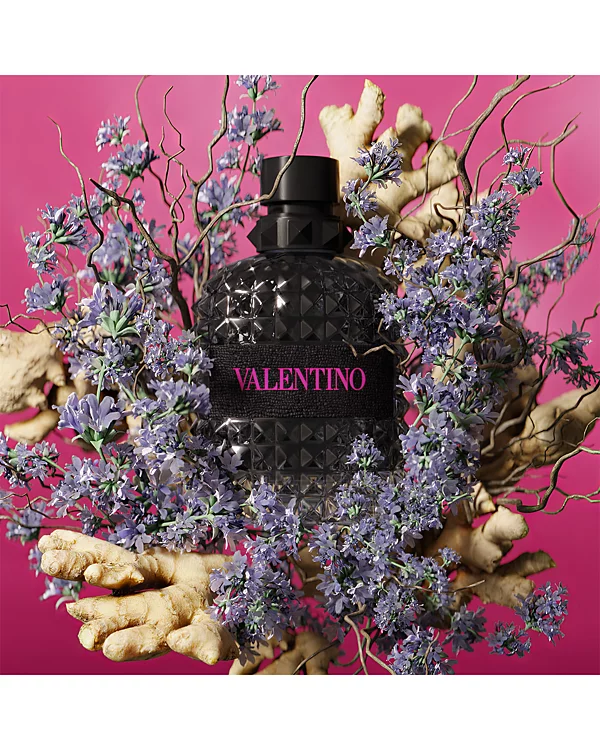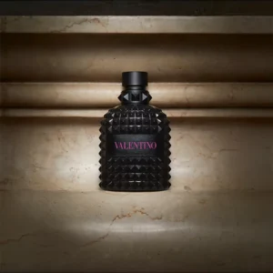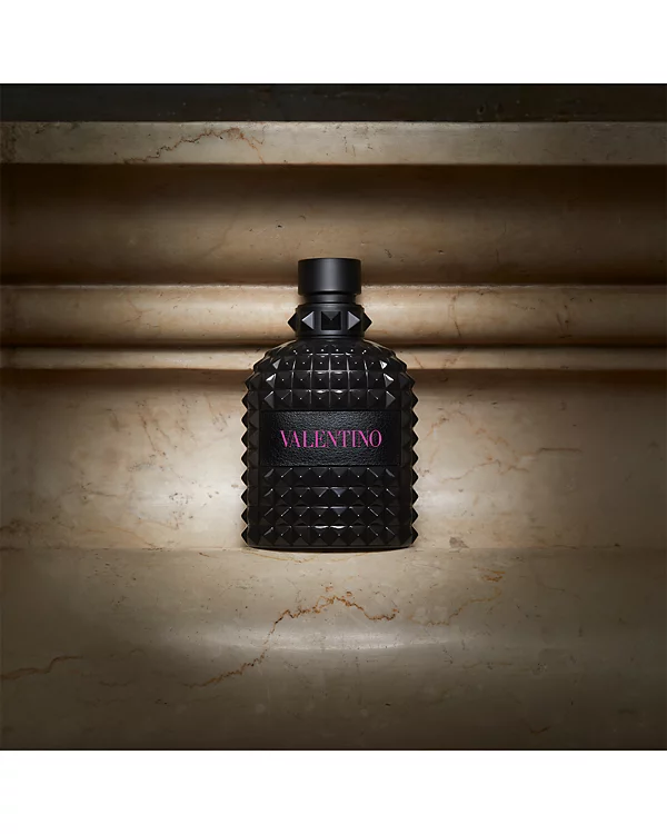 The edgy bottle is made even more desirable thanks to a vibrant black glass, highlighting the strong intensity of the fragrance, and thanks to the contrast of black leather with striking pink. Because at Valentino, pink is punk and passionate while black is intense and iconic. An extra-black bottle for an extra-dose of Born in Roma.