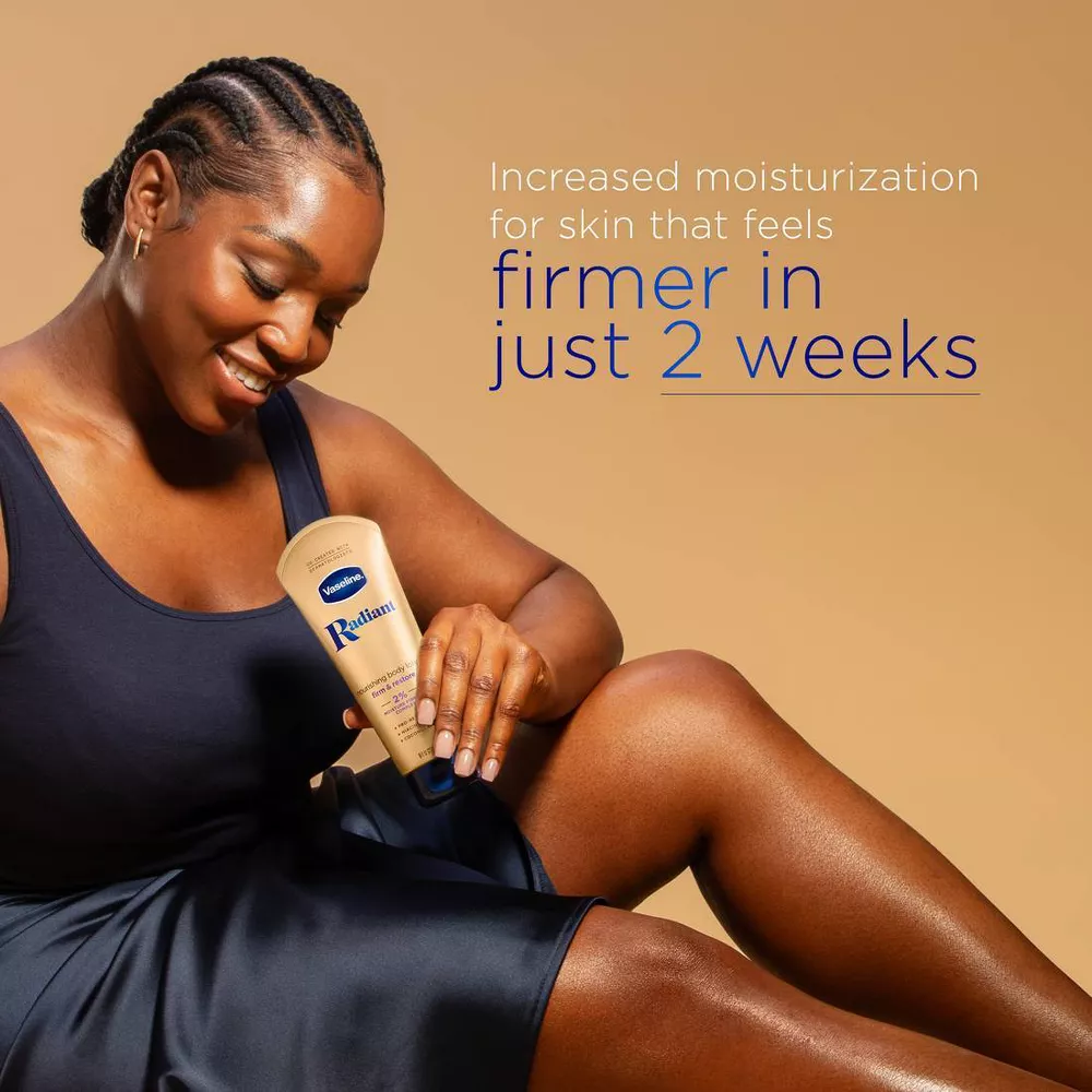 CLINICALLY PROVEN: Vaseline® Radiant X Firm & Restore is a fast-absorbing body lotion with 2% Moisture Firming Complex to increase moisturization, leaving skin feeling firmer in just 2 weeks.