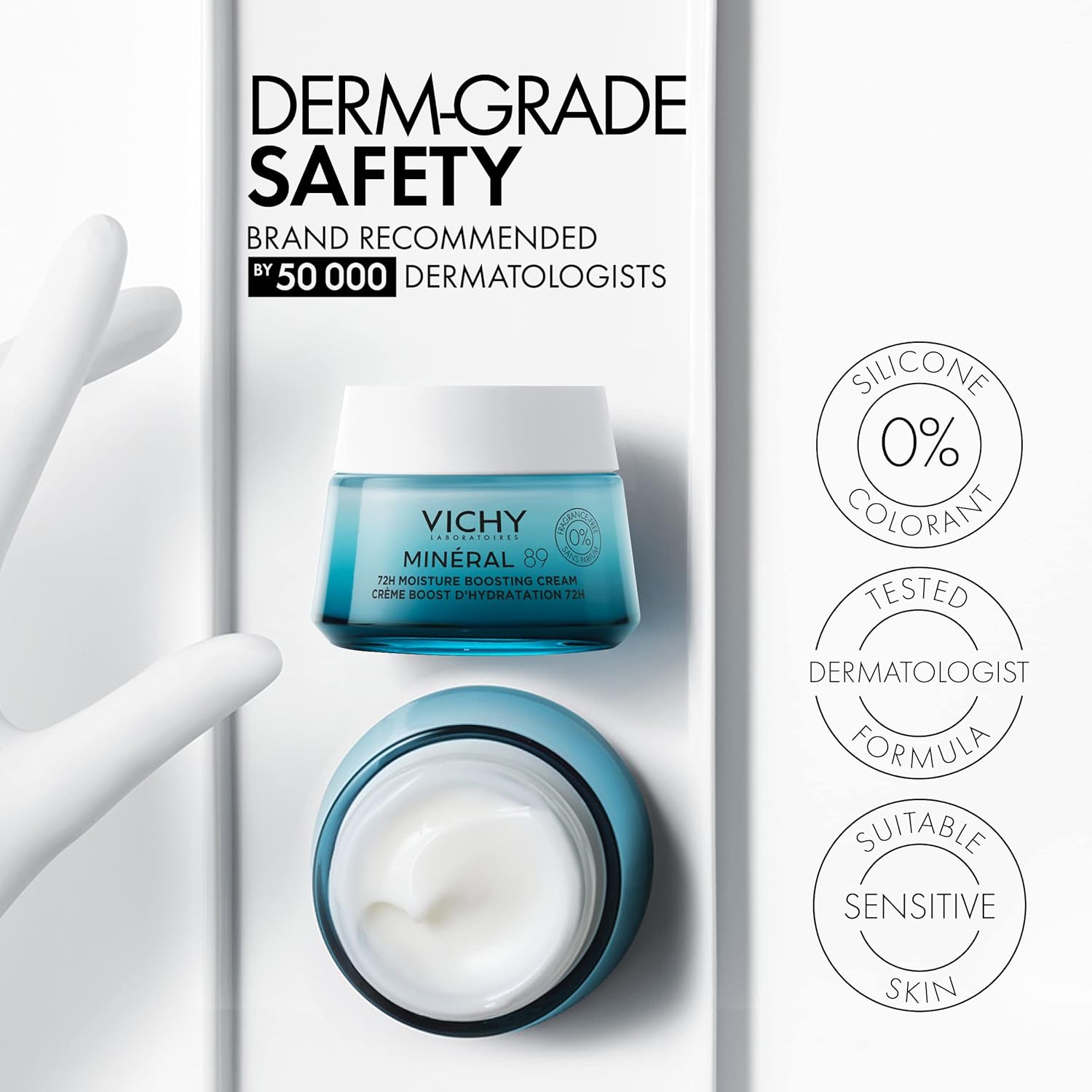 Our best-selling Mineral 89 Hyaluronic Acid Booster Serum was so good, we had to make it in a fragrance-free cream. The Mineral 89 72H Moisture Boosting Fragrance Free Cream hydrates and soothes all skin types, including sensitive skin. This dermatologist tested formula combines Hyaluronic Acid, Mineral-Rich Vichy Volcanic Water, Vitamins B3 & E, and Squalane, ensuring long-lasting 72-hour hydration and a strengthened moisture barrier. It’s lightweight, non-sticky texture quickly absorbs into the skin.