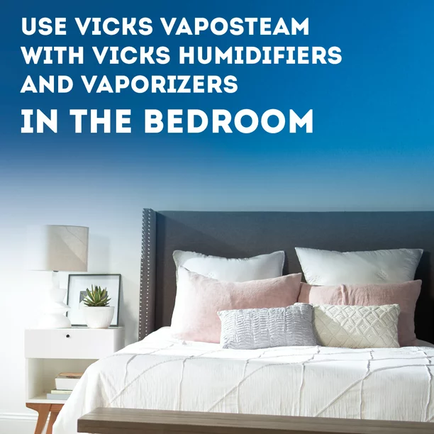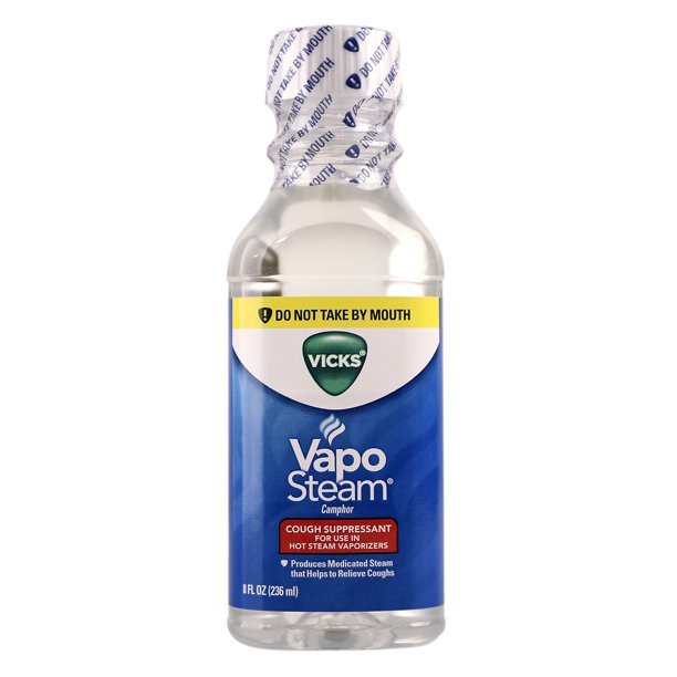Get help breathing by using this Vicks VapoSteam 8 fl oz. It should be added to a Vicks Vaporizer or other hot/warm steam humidifiers, to increase the action of steam to moisten dry, irritated breathing passages. The VapoSteam camphor can temporarily relieve coughs due to minor throat and bronchial irritation associated with a cold. This product can be used to take care of certain symptoms that make breathing difficult. The humidifier Vaposteam will make a useful addition to other cold and flu products in the medicine cabinet. It will come in handy during certain parts of the year when the weather and conditions make breathing hard. This product is not intended for internal use and should not be given to children under 2 years old. The Vicks VapoSteam 8 fl. oz. can be added to a humidifier and inhaled while the user is comfortably relaxing, to promote a fast recovery.
