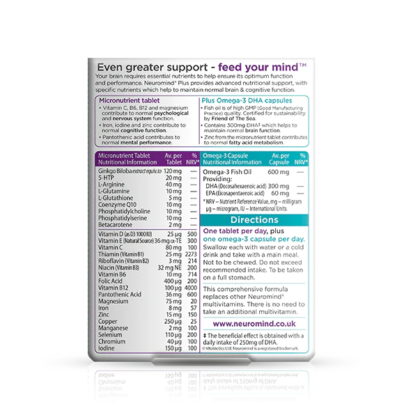 Neuromind Plus also contains ginkgo biloba which helps the maintenance of memory.