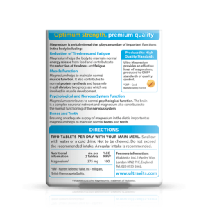 Optimum strength, high quality Magnesium. Magnesium plays important roles throughout the body, including energy release, muscle function, psychological function and maintenance of bones and teeth.