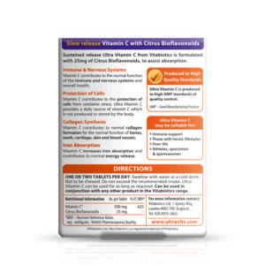 For constant support throughout the day, Ultra Vitamin C gives you slow release Vitamin C for maximum absorption and effectiveness.