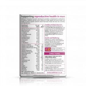 Optimised for male fertility and reproduction, Wellman conception is specially formulated with nutrients to support normal spermatogenesis and testosterone levels in the blood.
