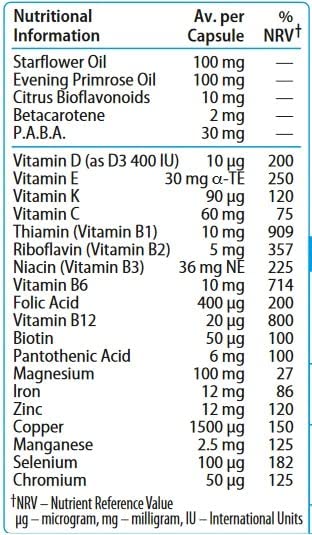 Vitabiotic’s flagship multivitamin for women with evening primrose oil and starflower oil, specially developed to help maintain overall health and vitality. Wellwoman is also the UK’s No.1 women’s supplement brand.