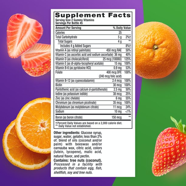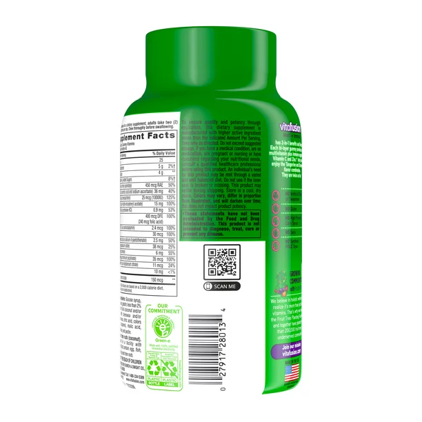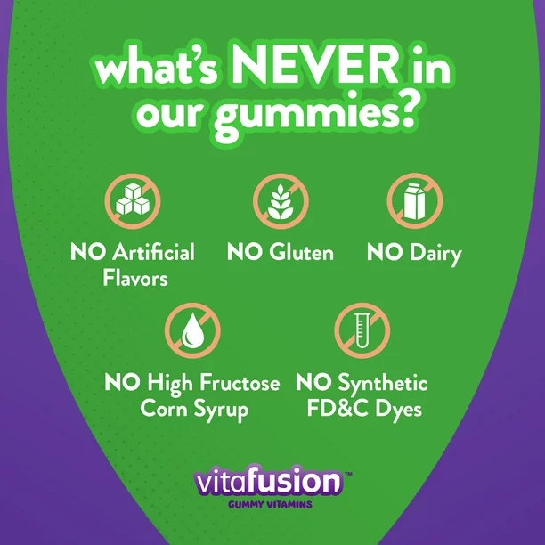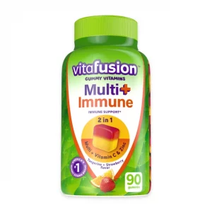 vitafusion Multi+ Immune Support* Gummies have 2-in-1 benefits and tasty fruit flavors. Each bilayer gummy provides a daily multivitamin plus immune support with Vitamin C + Zinc.* And you’ll love the delicious Tangerine and Strawberry flavor fusion. Each two-gummy serving of these vitamin gummies provides an excellent source of 12 vitamins and minerals with as much Vitamin A as a cup of broccoli, as much Vitamin C as one tangerine, and as much Vitamin D as 5 ounces of salmon. Each flavorful and nutritious multivitamin gummy is made with no artificial flavors or sweeteners, no gluten, no high fructose corn syrup, no dairy and no synthetic FD&C dyes.