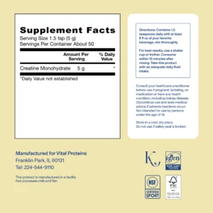 - Crush that workout: Our new creatine powder fuels your flex and supports your brain power. Vital Proteins® Creatine is your new go-to for a strong body and a sharp mind. ^**‡