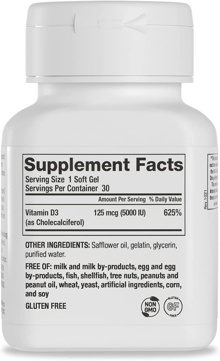 - IMMUNE SUPPORT – Helps your immune system function properly by delivering 5,000 IU a day of the most natural and absorbable form of this vital nutrient in a small once-daily soft gel with no added fillers.