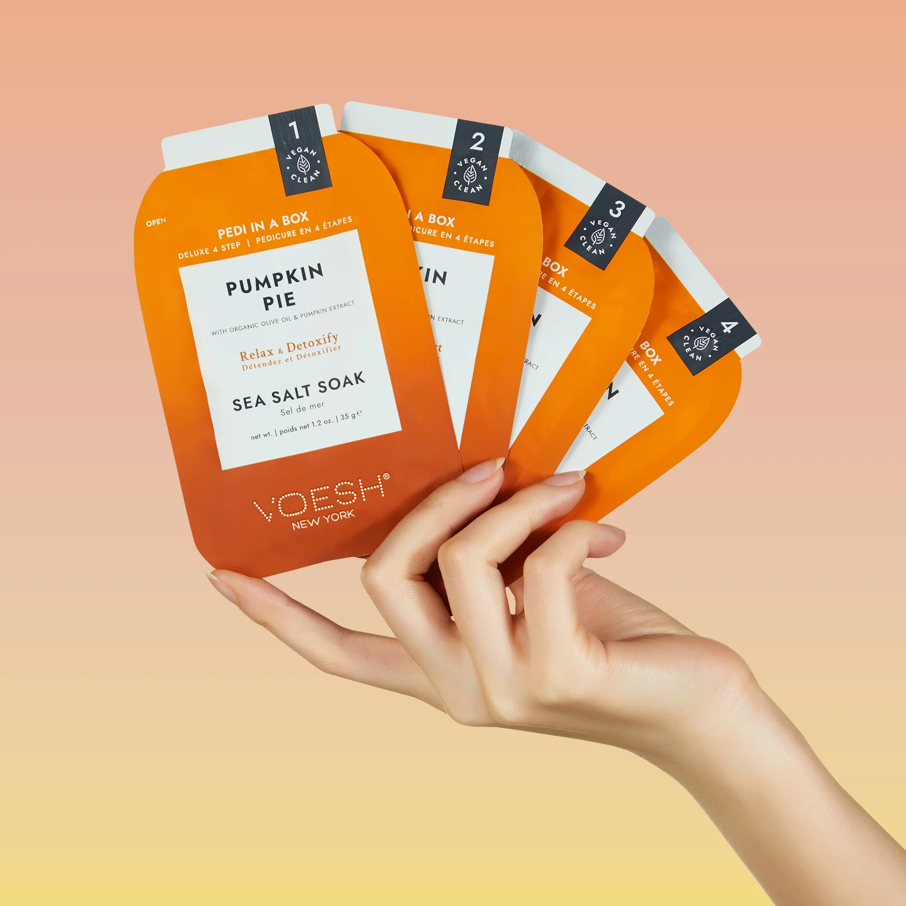 Treat your clients with a delicious and invigorating service after the dry, hot summers days with our new Pedi in a Box 4 Step Deluxe Pumpkin Spice!