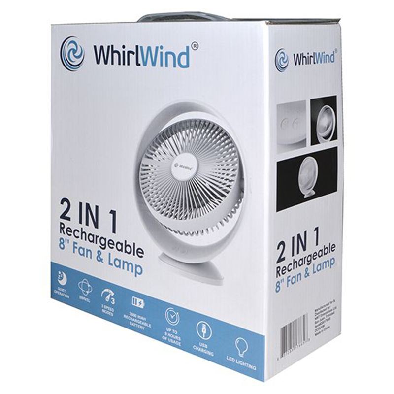 WhirlWind 2 in 1 8″ Rechargeable Fan and Lamp