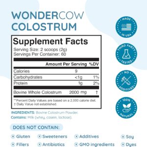 - Bovine colostrum has been shown to provide a variety of health benefits. With our premium WonderCow colostrum powder supplement, you can experience the full benefits of bovine colostrum. Our product features less processed whole colostrum, which makes it more effective compared to others on the market.