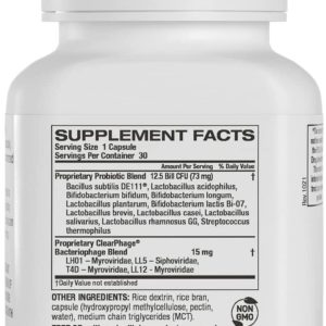 - PROMOTE MICROBIOME BALANCE – Made with the next generation of prebiotics – ClearPhage is a fast acting, patented bacteriophage cocktail allows healthy gut flora to thrive, which naturally limits the growth of other bacteria.